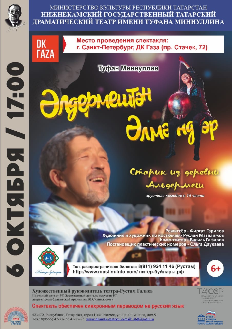 "Әлдермештән Әлмәндәр" ("Старик из деревни Альдермеш") - совсем еще молодой спектакль, премьера которого сотоялась год назад. Спектакль был выпущен при финансовой поддержке федерального партийного проекта «Театры малых городов России».