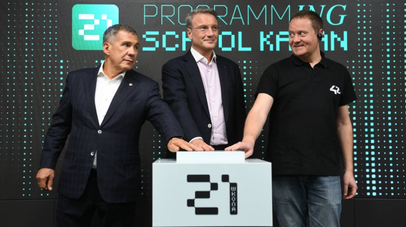 В Казани состоялось торжественное открытие «Школы 21» - образовательного проекта Сбербанка, который в ближайшие несколько лет позволит работодателям республики и всей страны получить программистов мирового уровня. В церемонии открытия приняли участие Президент Республики Татарстан Рустам Минниханов и президент, председатель правления Сбербанка Герман Греф.