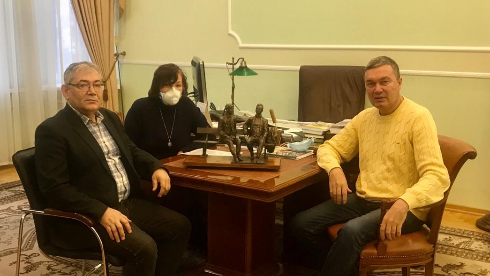 Постоянный представитель Республики Татарстан Ренат Валиуллин встретился с известными петербургскими творческими деятелями, со скульптором Ахнафом Зиякаевым и краеведом Альмирой Тагирджановой.