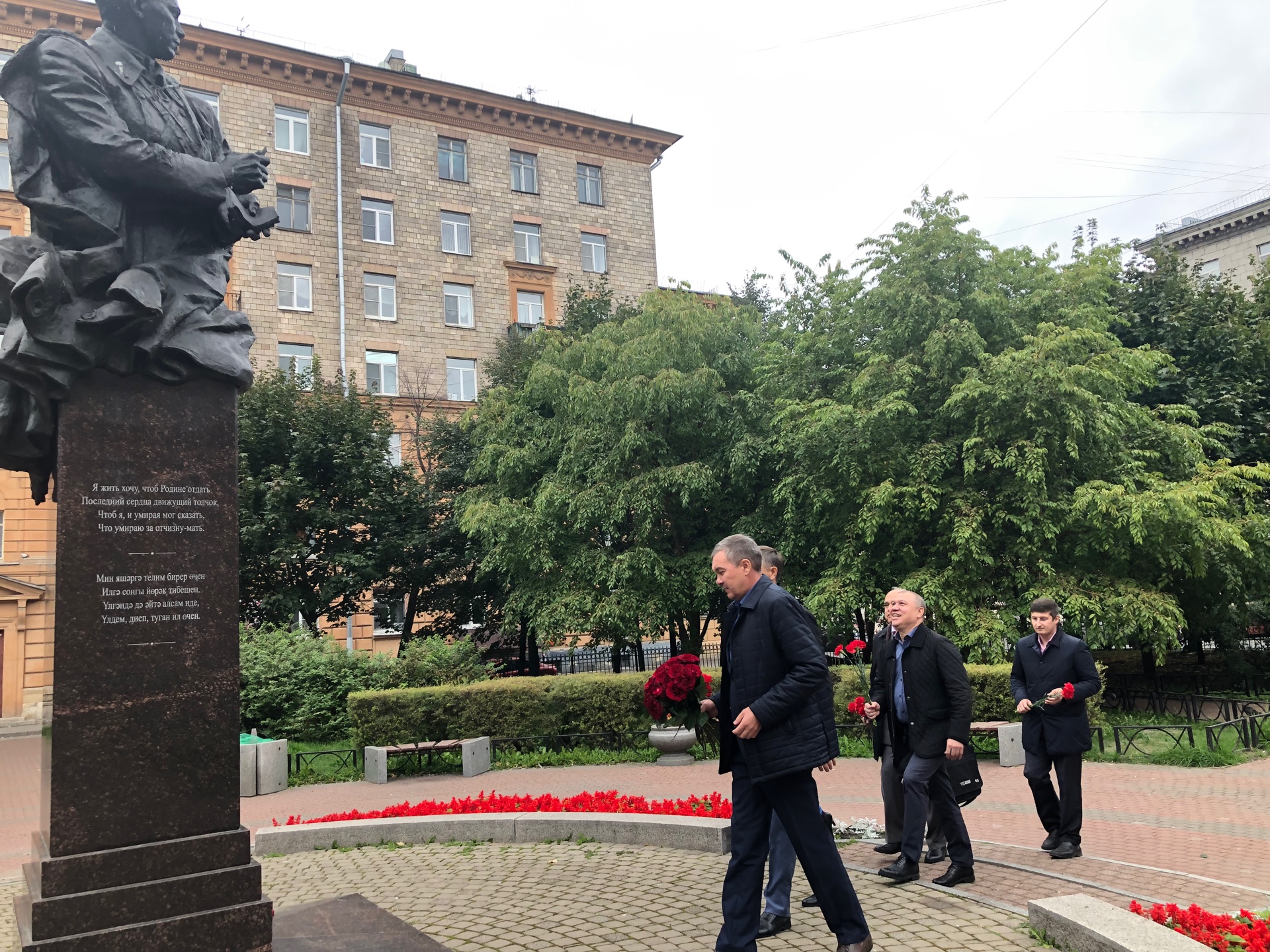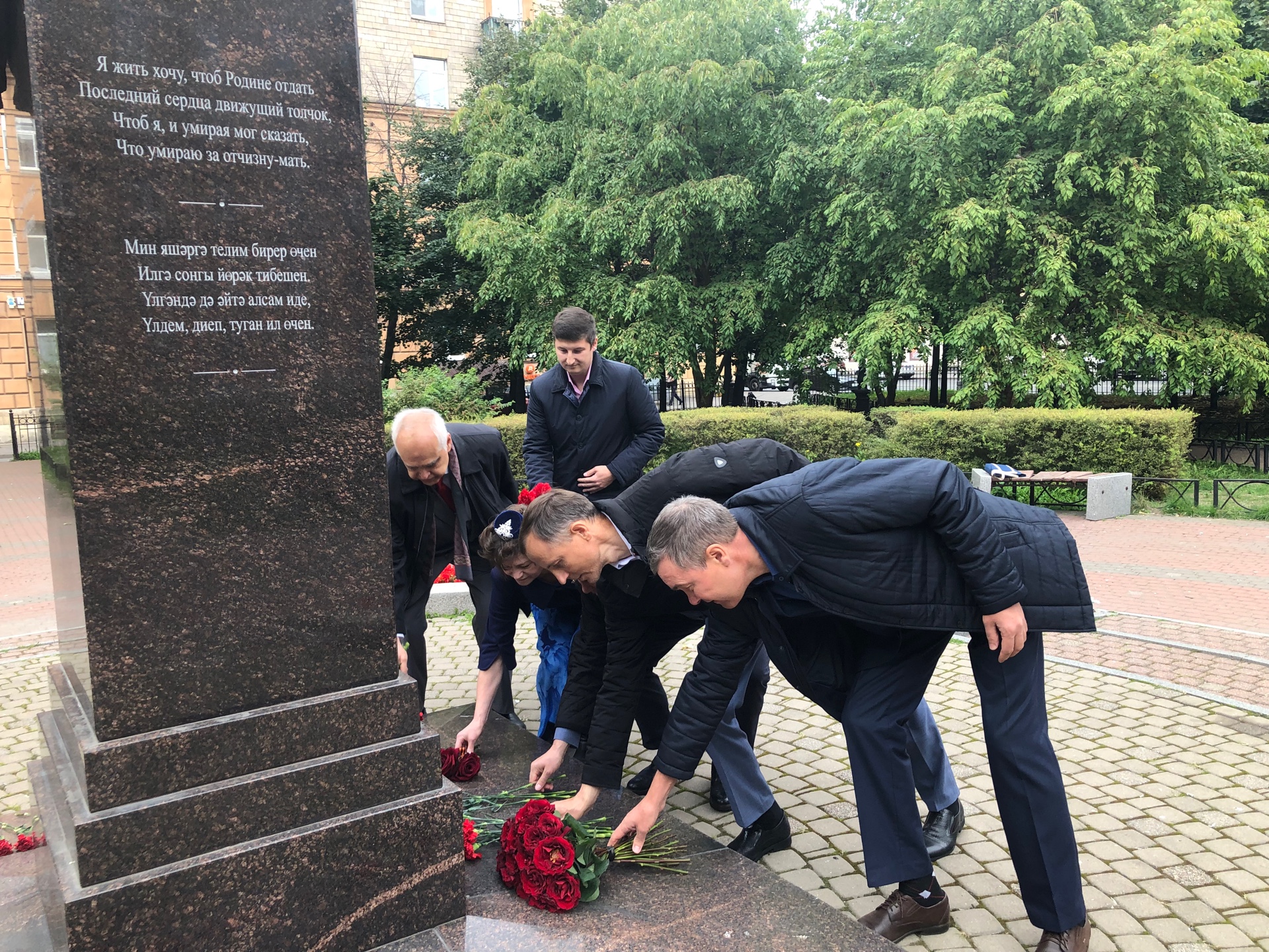 Постоянный представитель Республики Татарстан в городе Санкт-Петербурге и Ленинградской области Ренат Валиулин вместе с активистами татарской общественности возложили цветы к памятнику Мусы Джалиля, который воевал на Ленинградском и Волховском фронтах, в ходе Любанской наступательной операции поэт был тяжело ранен и попал в плен.