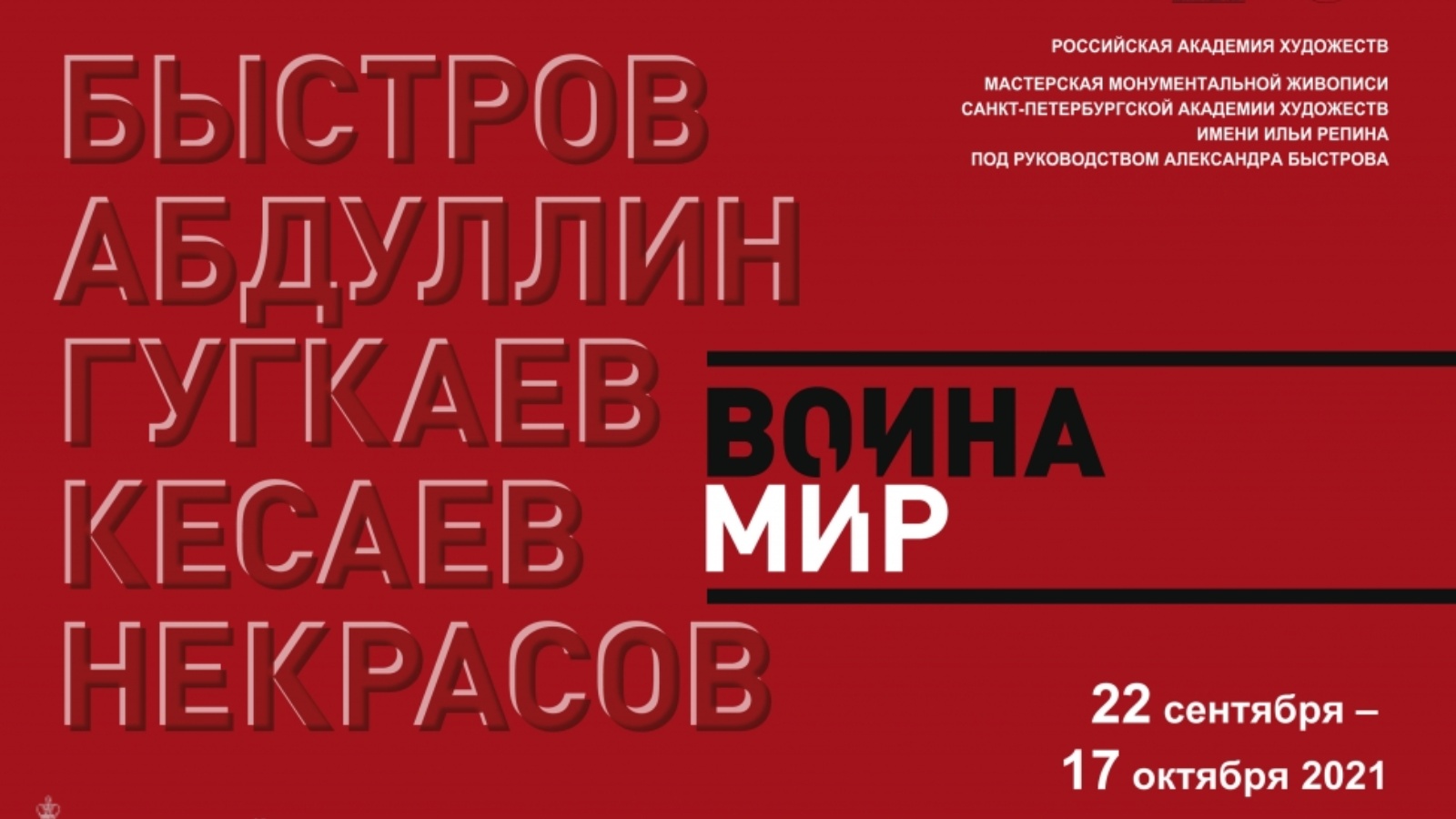 Идею четырех участников данного проекта – выпускников Санкт-Петербургского государственного академического института живописи, скульптуры и архитектуры им. И.Е.Репина при Российской академии художеств – Романа Абдуллина, Чермена Гугкаева, Марата Кесаева и Сергея Некрасова, личным участием в данной выставке решил поддержать руководитель мастерской монументальной живописи, профессор Санкт-Петербургской академии художеств имени Ильи Репина, художественный руководитель мозаичной мастерской РАХ в Санкт-Петербурге Александр Быстров.