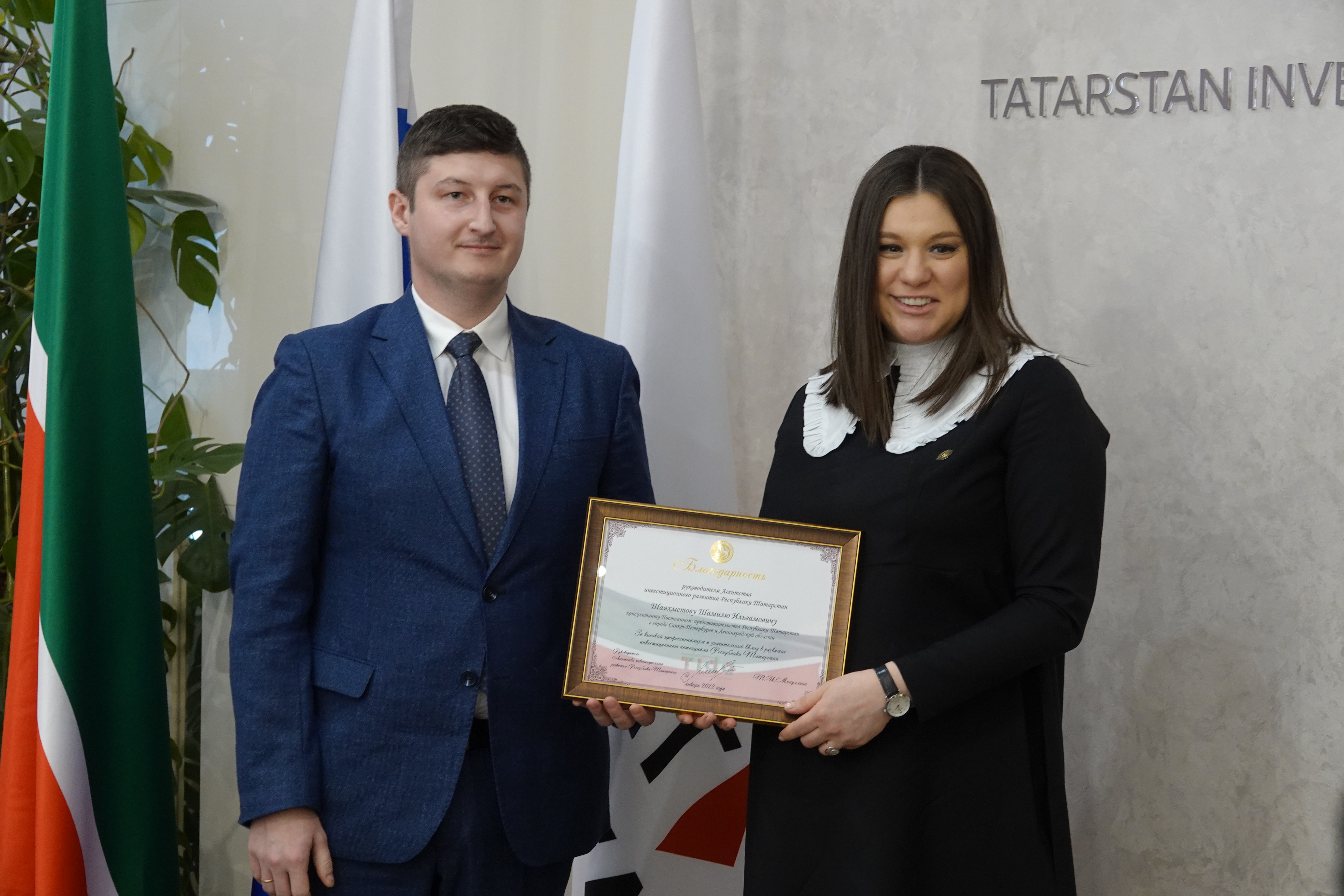 Итоговая коллегия Агентства завершилась традиционным вручением наград. По итогам прошлого года Постоянное представительство Республики Татарстан в городе Санкт-Петербурге и Ленинградской области было признано одним из лучших в области привлечения инвестиций. За высокий профессионализм и вклад в в развитие инвестиционного потенциала республики Почетной грамотой Агентства инвестиционного развития РТ награжден Постоянный представитель Республики Татарстан в городе Санкт-Петербурге и Ленинградской области Ренат Валиуллин, благодарностью руководителя Агентства – консультант Постоянного представительства РТ Шамиль Шаяхметов.