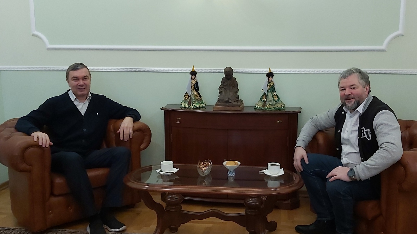 Постоянный представитель Республики Татарстан в городе Санкт-Петербурге и Ленинградской области Ренат Валиуллин провел рабочую встречу с Президентом Клуба болельщиков сборной России «Russia Unites» и учредителем Консультационной группы «ТИМ» Эдуардом Латыповым.