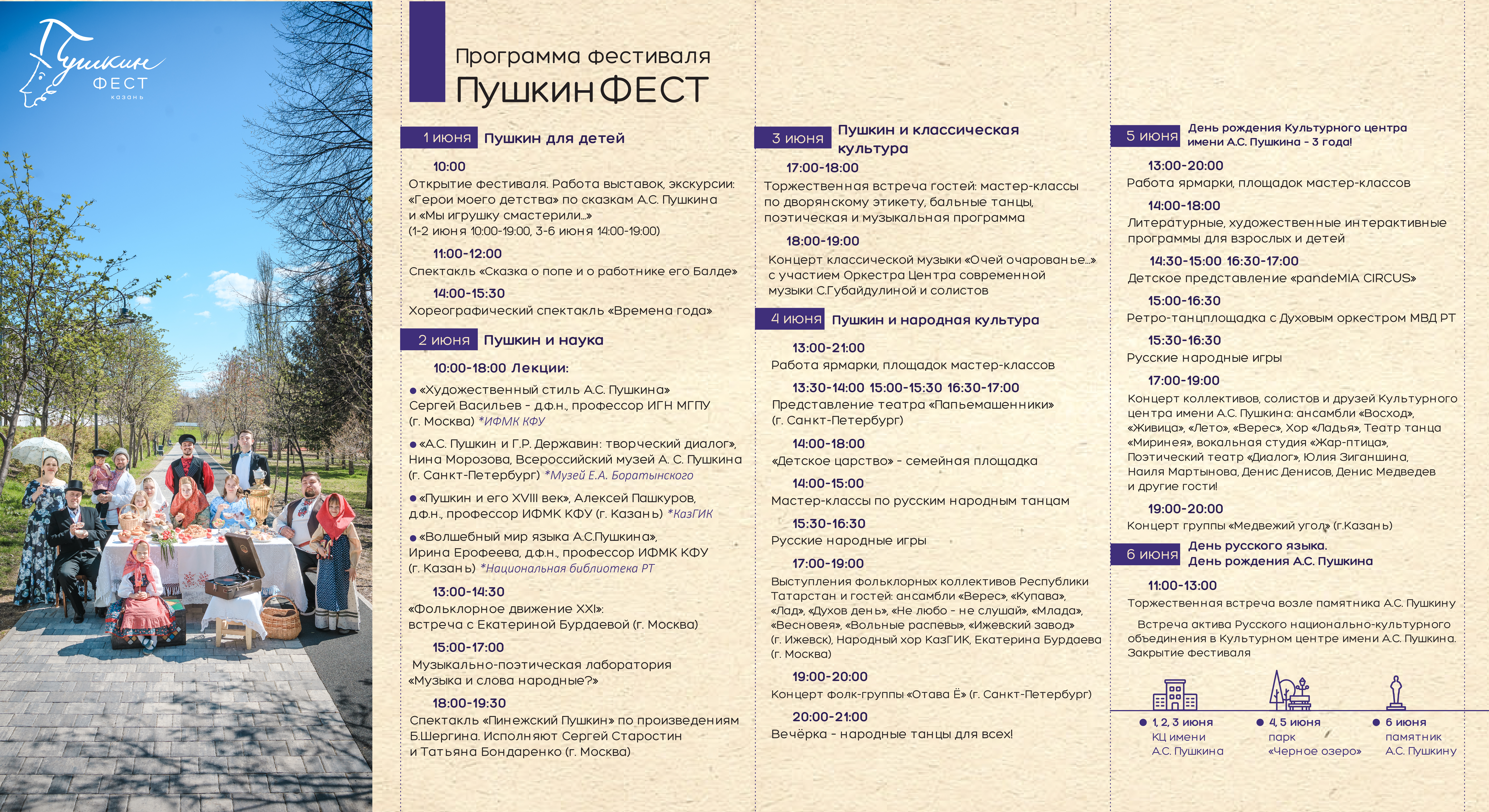 В завершающий день, 6 июня, артисты Культурного центра примут участие в торжественной встрече у памятника А.С. Пушкину.
