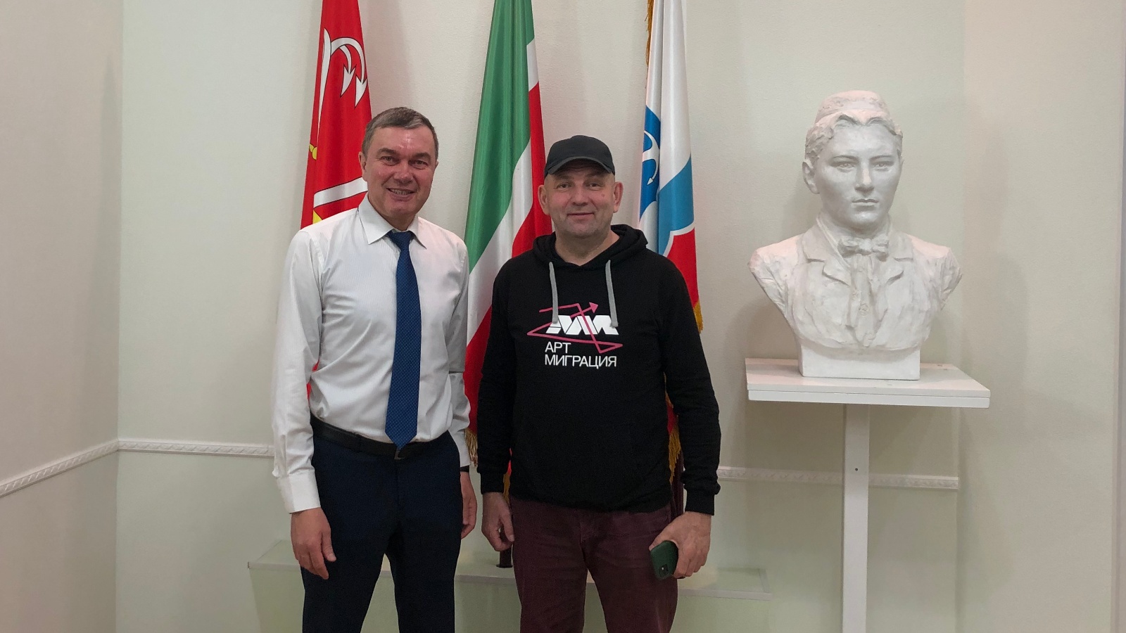 Сегодня в Постпредстве республики состоялась встреча Постоянного представителя Республики Татарстан Рената Валиуллина с директором Буинского государственного драматического театра, народным артистом Татарстана Раилем Садриевым.