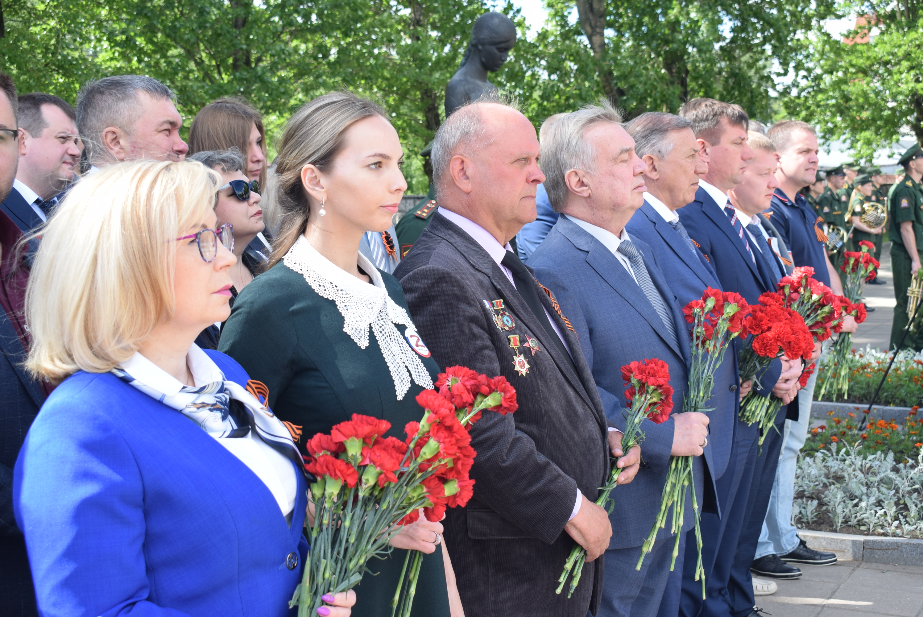 Торжественно-траурный церемониал прошел на территории мемориального комплекса «Журавли». Участники почтили память героев минутой молчания и возложили венки и цветы к стеле.