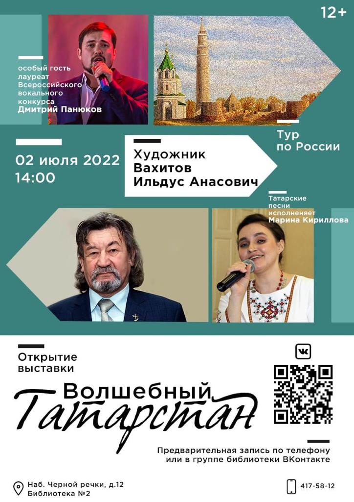 2 июля 2022 года в 14-00 в Библиотеке № 2 им. Д.А. Фурманова состоится открытие персональной выставки «Волшебный Татарстан» петербургского художника Ильдуса Вахитова.