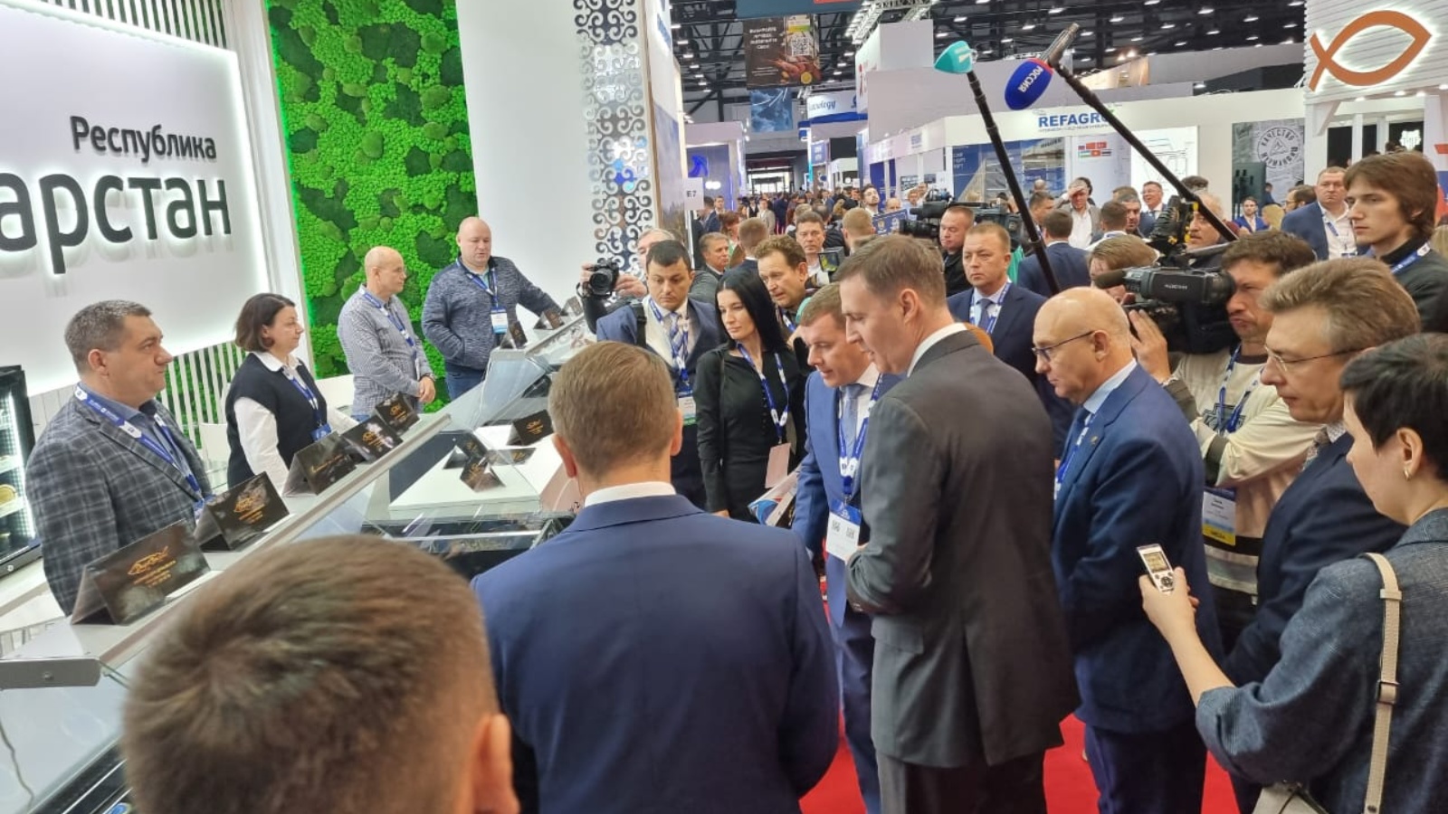 5 Международный рыбопромышленный форум собрал в Северной столице России более 400 компаний из 40 регионов России и 25 стран мира. Татарстанскую делегацию возглавляют заместитель Премьер-министра РТ — министр сельского хозяйства и продовольствия республики Марат Зяббаров и Председатель Государственного комитета Республики Татарстан по биологическим ресурсам Федор Батков.