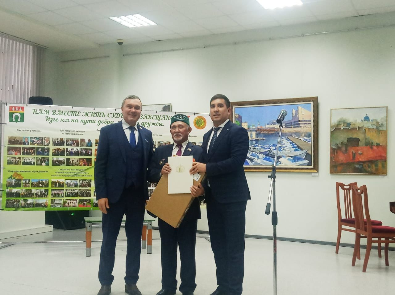 Перед началом празднования, в фойе Дворца культуры гостям показали выставку известного петербургского художника, заслуженного деятеля искусств Республики Татарстан Роберта Мифа.