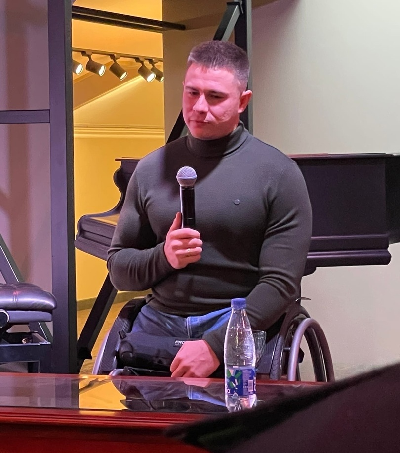 На встрече Рустам рассказал о своем жизненном пути. Он уже дважды прыгал с парашютом, участвовал в массовом забеге. Трогательная история о преодолении испытаний судьбы, принятия нового себя и покорении новых вершин. Такие люди, как он, дают возможность очень многим поверить в свои силы.