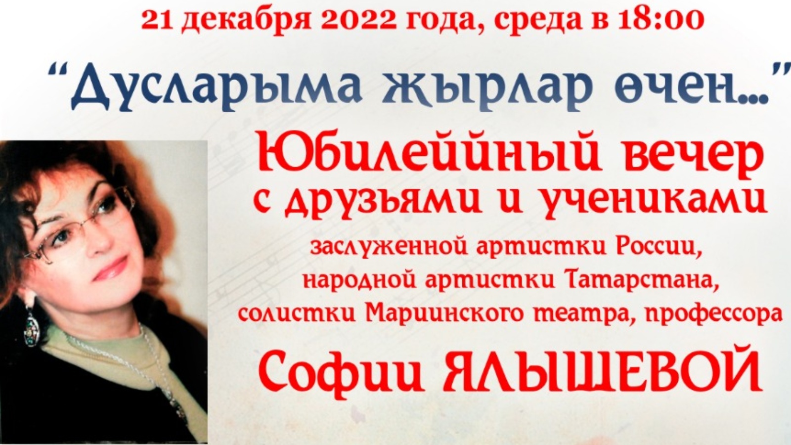 В Санкт-Петербурге состоится юбилейный вечер заслуженной артистки Российской Федерации и народной артистки Республики Татарстан, солистки Мариинского театра, профессора Софии Ялышевой