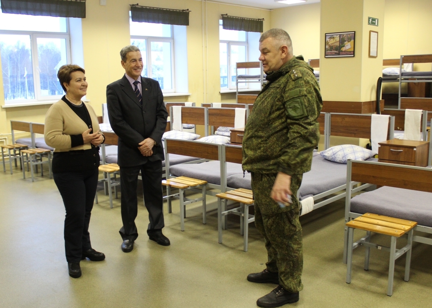 Омбудсмен Татарстана посетила казарму молодого пополнения, ознакомилась с их бытом и пообщалась с ребятами. Для ребят созданы отличные условия: тёплая казарма, имеются душевые кабины, стиральные машины, хорошие бытовые помещения и комнаты для занятий. В столовой для личного состава проводятся дни национальных кухонь. От ребят не поступило жалоб на условия службы и на питание. Делегацию в части встречала и сопровождала заместитель командира по военно-патриотическому воспитанию.