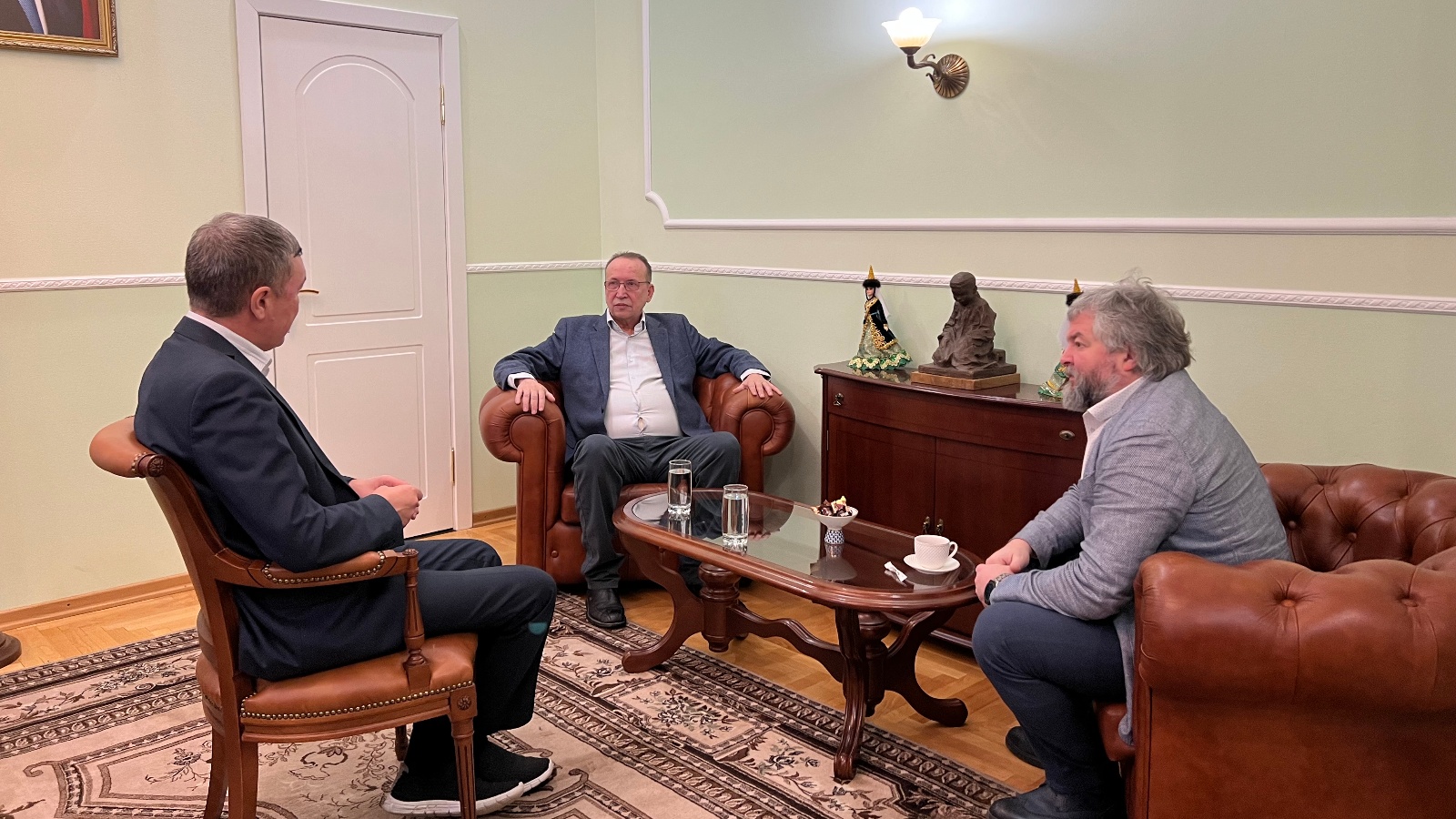 Постоянный представитель Республики Татарстан в городе Санкт-Петербурге и Ленинградской области Ренат Валиуллин провел рабочую встречу с Президентом Клуба болельщиков сборной России «Russia Unites» и учредителем Консультационной группы «ТИМ» Эдуардом Латыповым и генеральным директором ООО «Нева Тревел Компани» Андреем Набатовым.