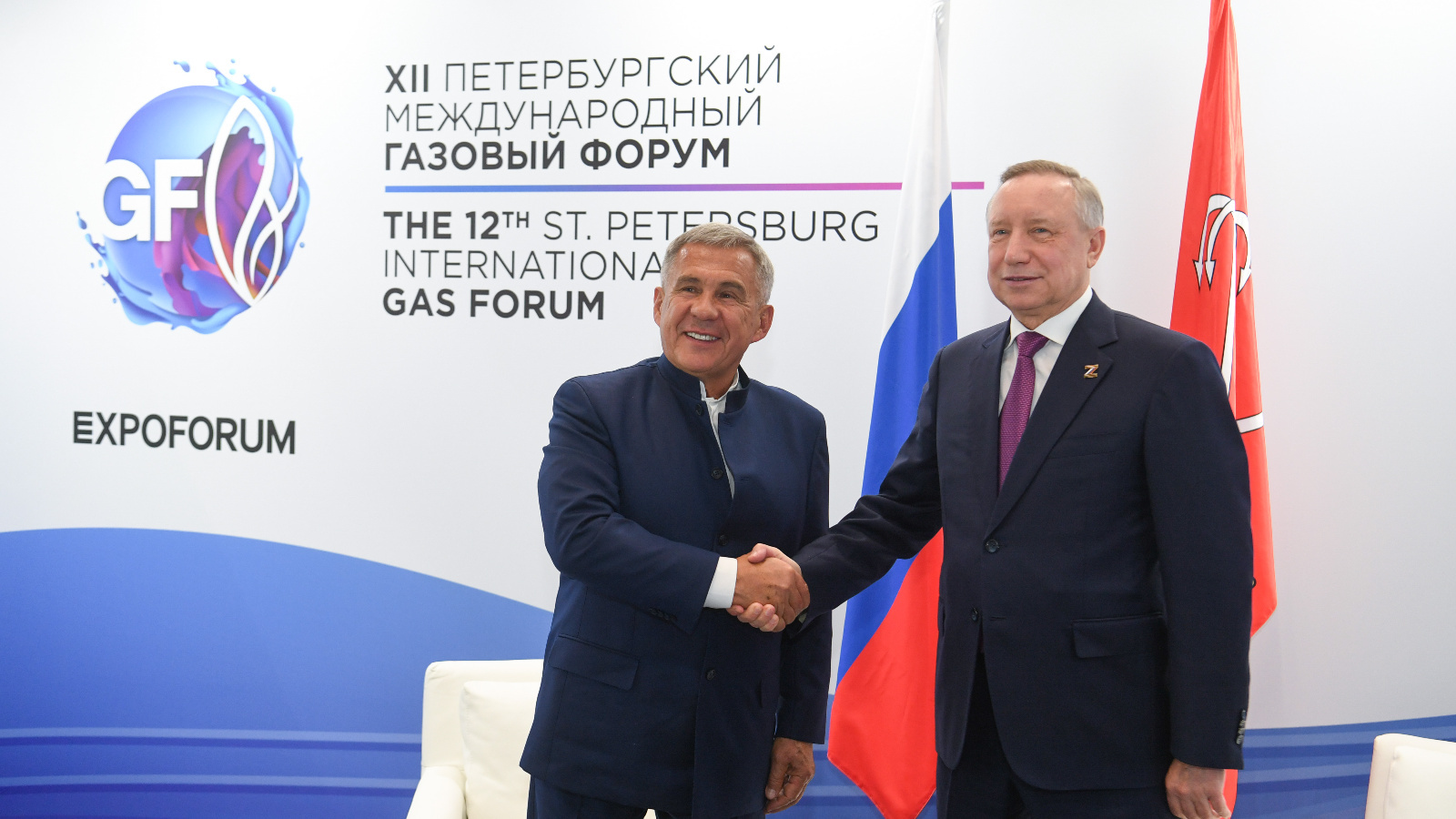 Раис Татарстана Рустам Минниханов встретился с губернатором Санкт-Петербурга Александром Бегловым. Встреча прошла на полях Петербургского международного газового форума.