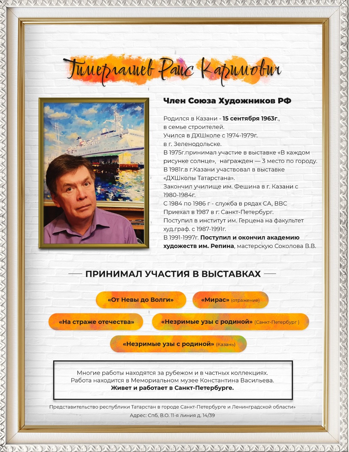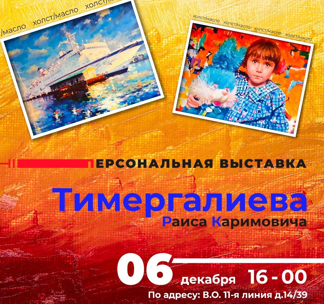 6 декабря в Постоянном представительстве Республики Татарстан в городе Санкт-Петербурге и Ленинградской области состоится открытие персональной выставки художника-живописца Раиса Тимергалиева.