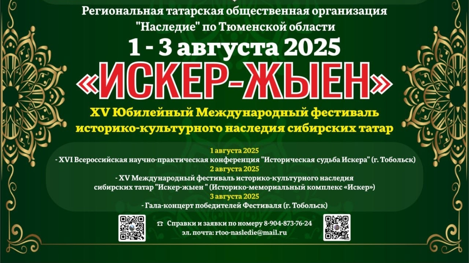 Приглашаем принять участие в работе XVI Всероссийской научно-практической конференции «Историческая судьба Искера», которая состоится в рамках XV Международного фестиваля историко-культурного наследия сибирских татар «Искер-җыен».