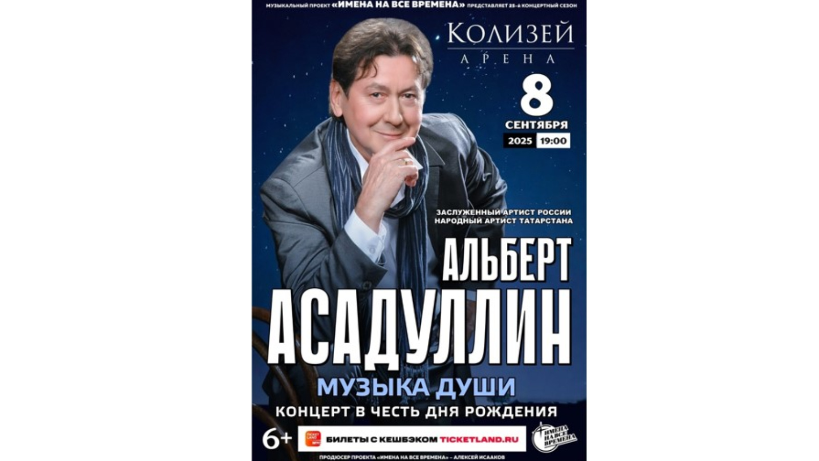 8 сентября в честь дня рождения состоится концерт «Музыка души» Альберта Асадуллина – заслуженного артиста России, народного артиста Республики Татарстан.
