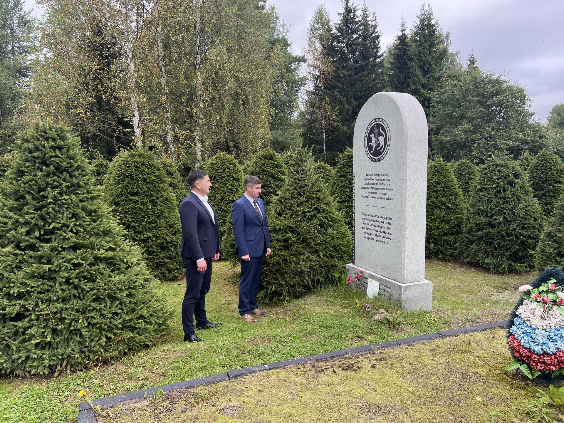 В этот же день посетили Мемориальный памятный обелиск воинам-татарстанцам, погибшим при освобождении Выборга и умершим в лагере военнопленных «Тиенхаара» в годы Великой Отечественной войны, который был открыт в декабре 2014 года в посёлке Малиновка Выборгского района Ленинградской области.