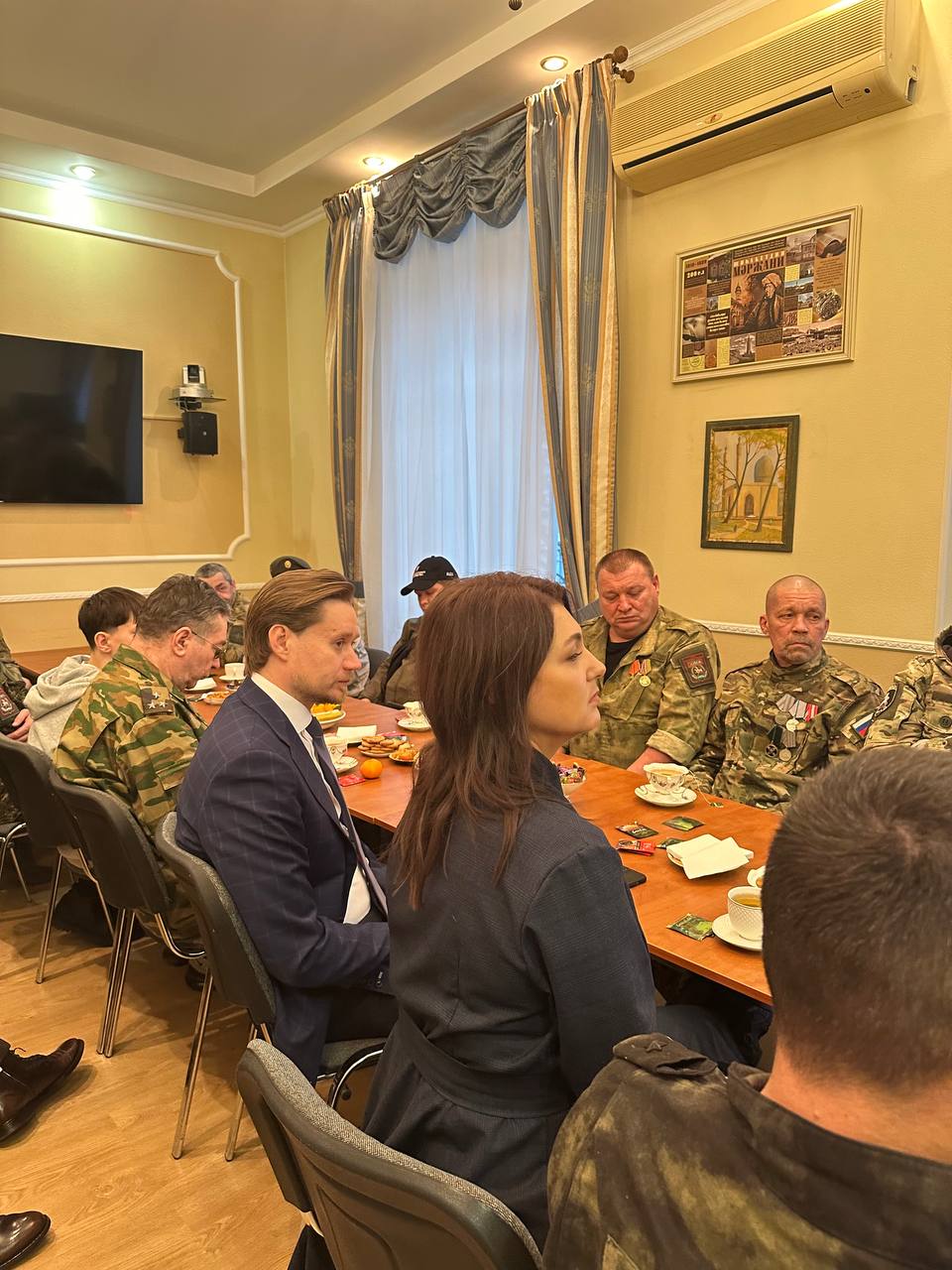Перед гостями выступил Постоянный представитель Республики Татарстан Шаяхметов. Он подробно рассказал о деятельности представительства, отметив, что активная гражданская позиция и системная работа по поддержке участников СВО и их семей являются одним из ключевых приоритетов.