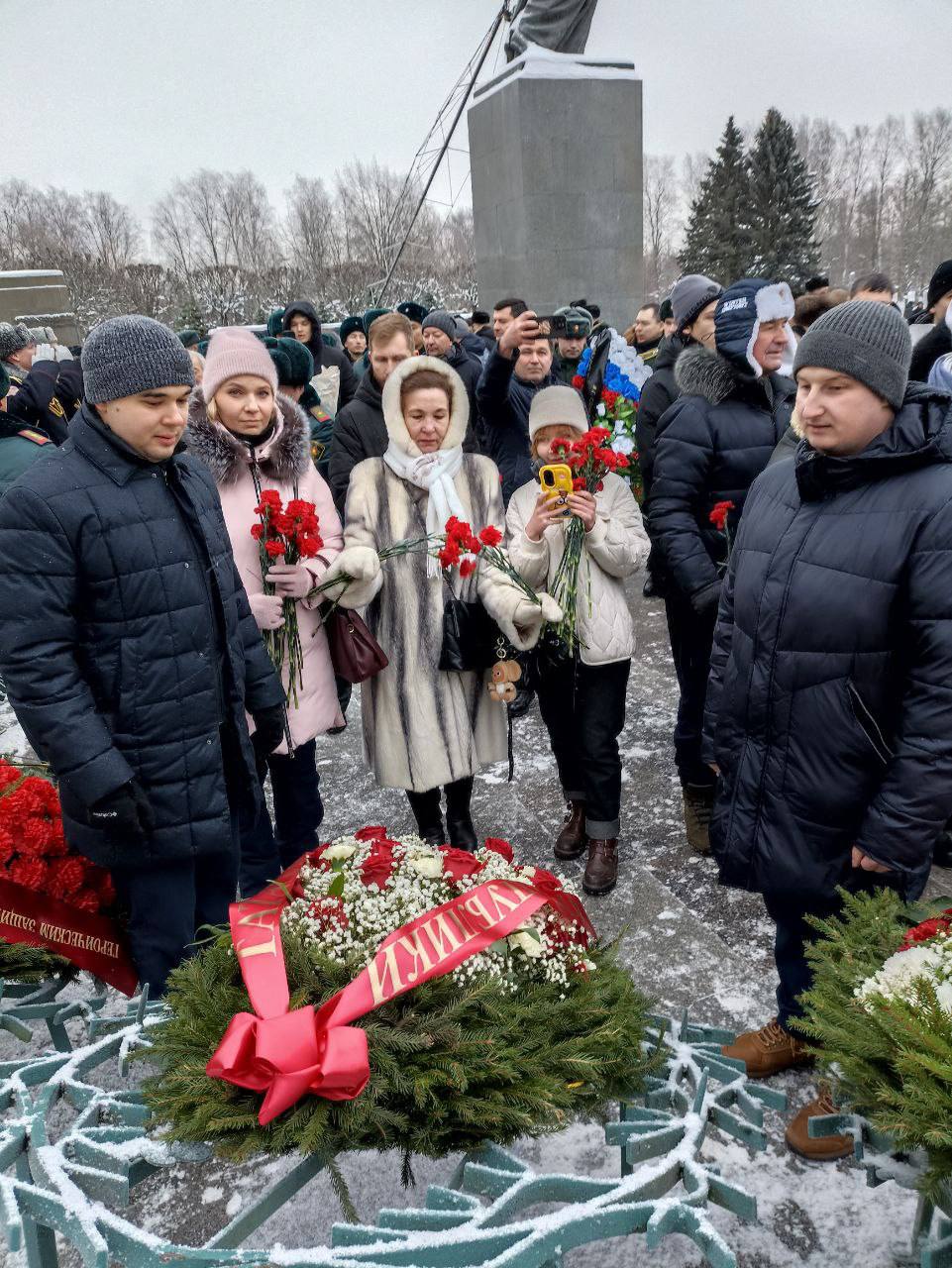 На территории Пискаревского мемориального кладбища состоялась торжественно-траурная церемония возложения венков и цветов к монументу, посвященная 82-й годовщине полного освобождения Ленинграда от фашистской блокады.